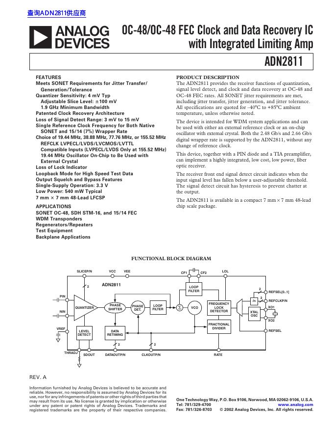 ANALOG DEVICES ADN2811 数据手册.pdf