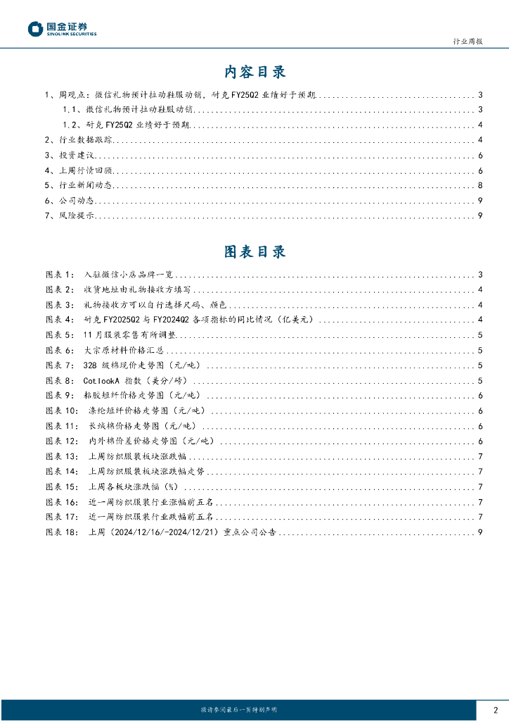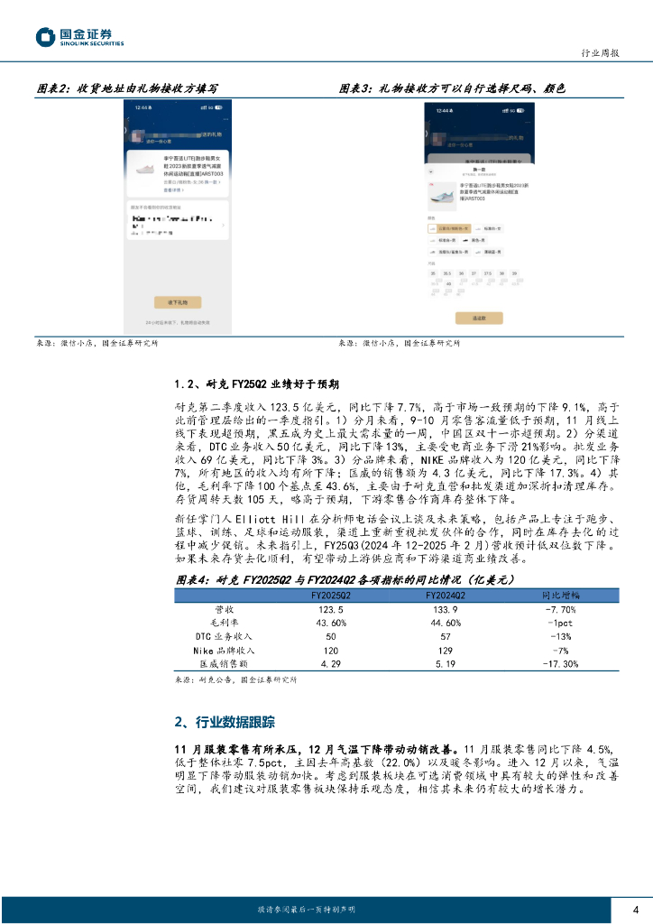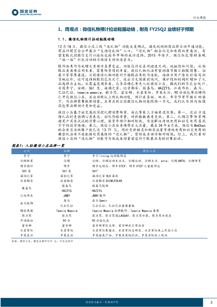 国金证券:纺织品和服装行业周报:微信礼物预计拉动鞋服动销,耐克FY25Q2业绩好于预期.pdf