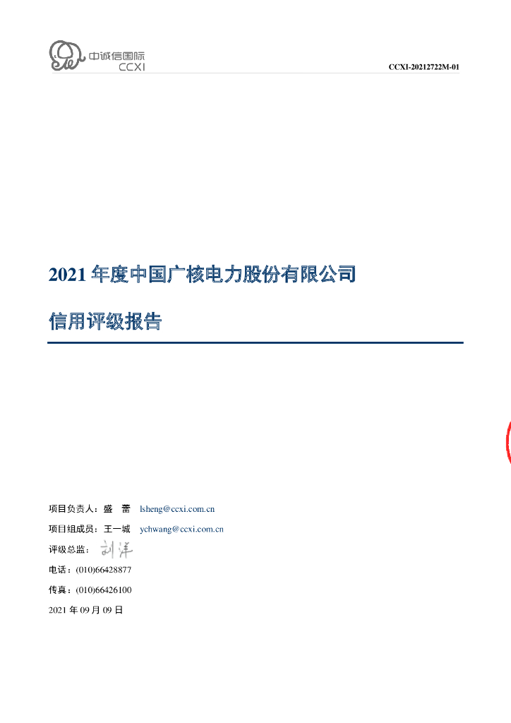中诚信:2021年度中国广核电力股份有限公司信用评级报告.pdf