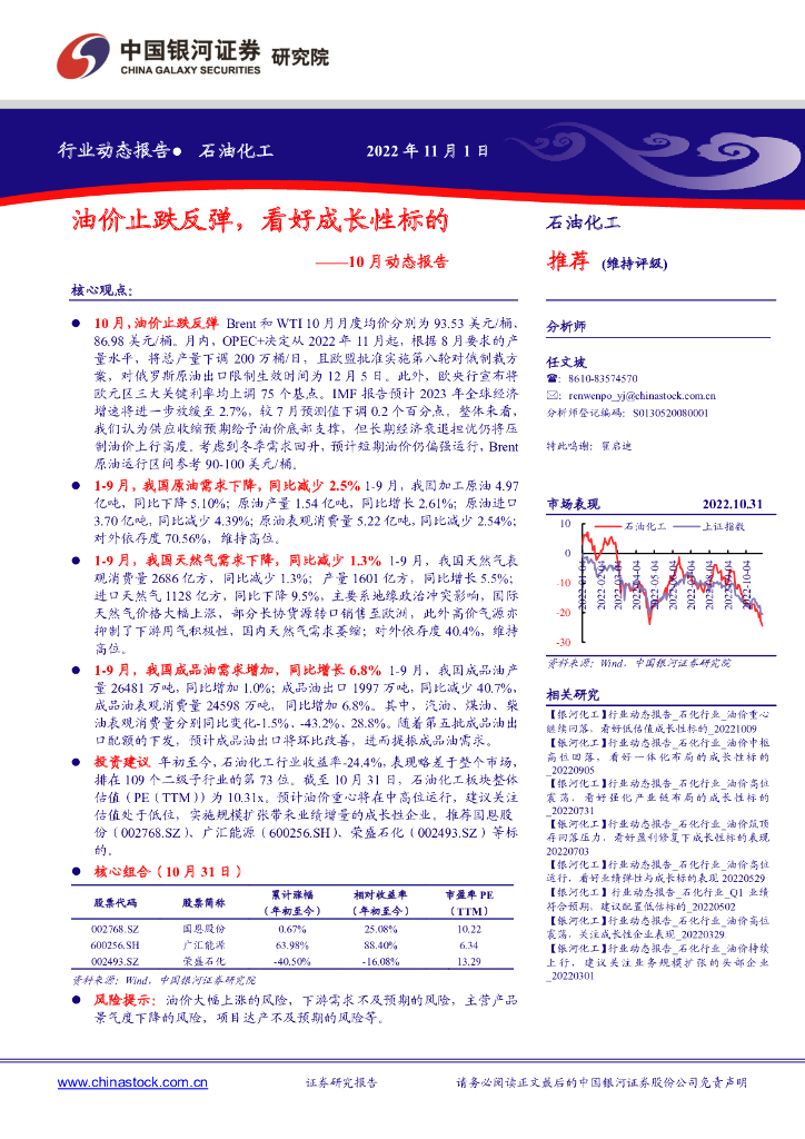 中国银河:石油化工10月动态报告:油价止跌反弹,看好成长性标的.pdf