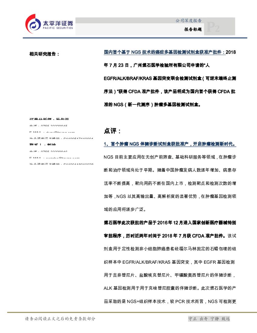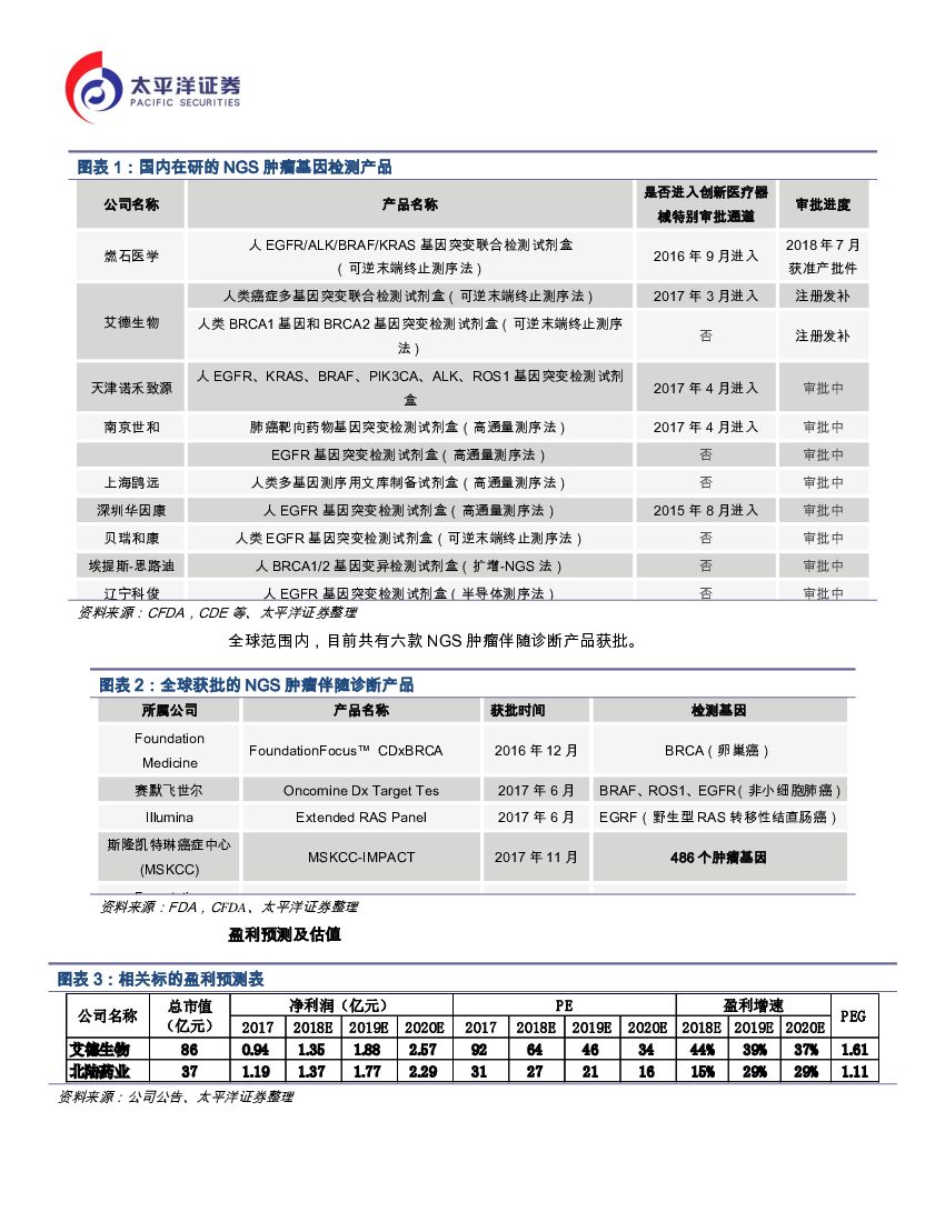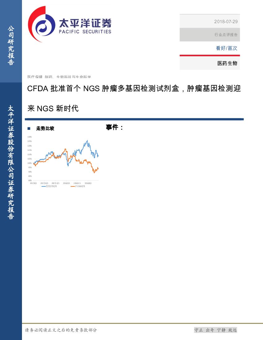 太平洋证券:医药生物行业点评报告:CFDA批准首个NGS肿瘤多基因检测试剂盒,肿瘤基因检测迎来NGS新时代.pdf