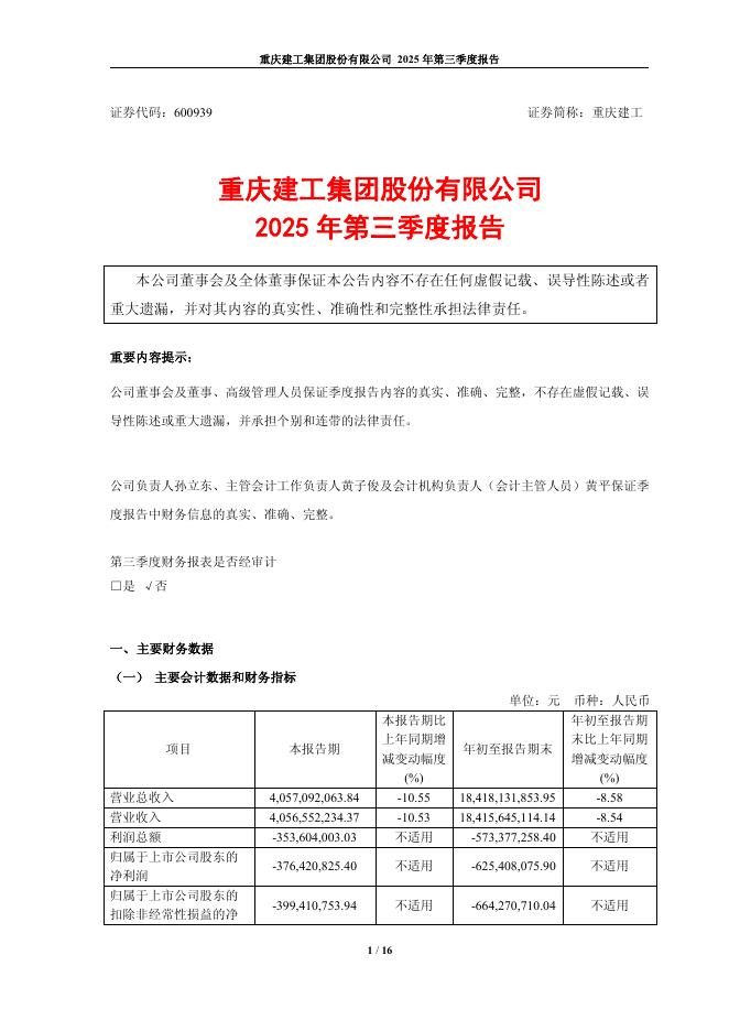600939-重庆建工:重庆建工2025年第三季度报告.pdf