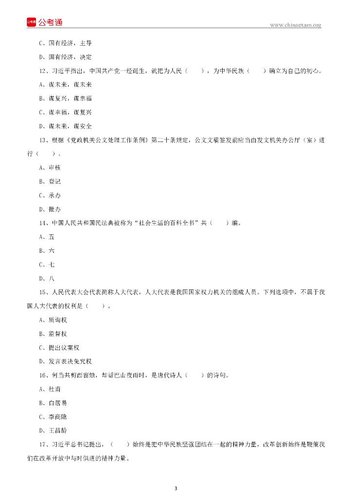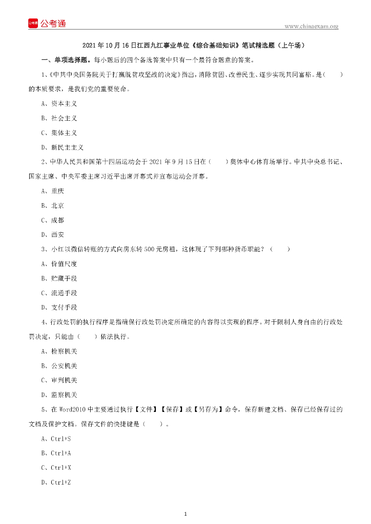 2021年10月16日江西九江事业单位《综合基础知识》笔试精选题(上午场).pdf