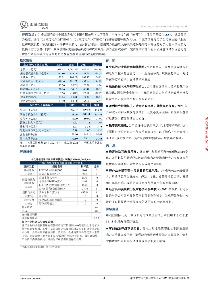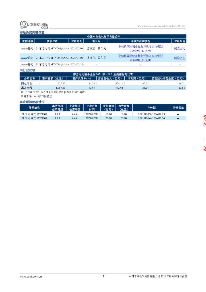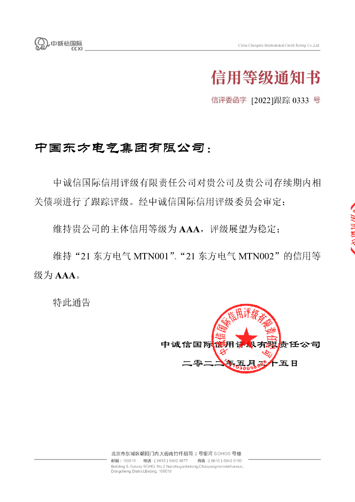 中诚信:中国东方电气集团有限公司2022年度跟踪评级报告.pdf