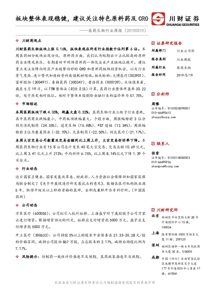 川财证券:医药生物行业周报:板块整体表现稳健,建议关注特色原料药及CRO.pdf
