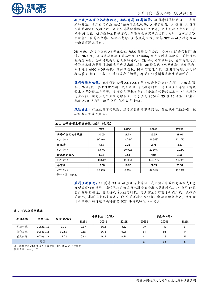 海通国际:盛天网络(300494)-多款新游蓄势待发,AI+XR有望构成第二增长曲线.pdf