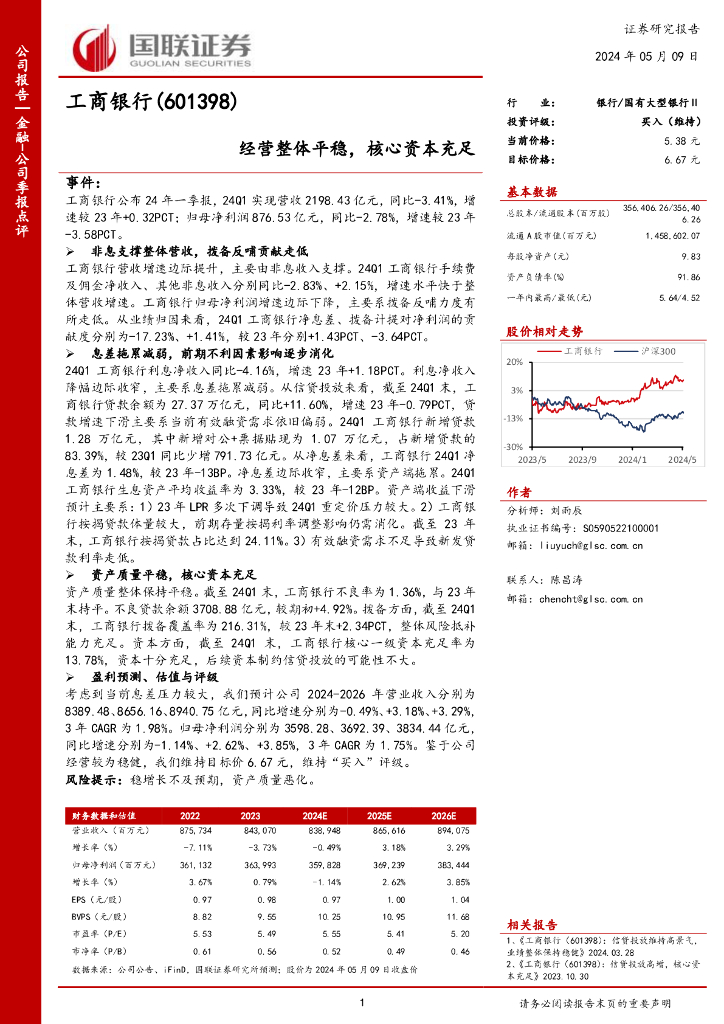 国联证券:工商银行(601398)-经营整体平稳,核心资本充足.pdf