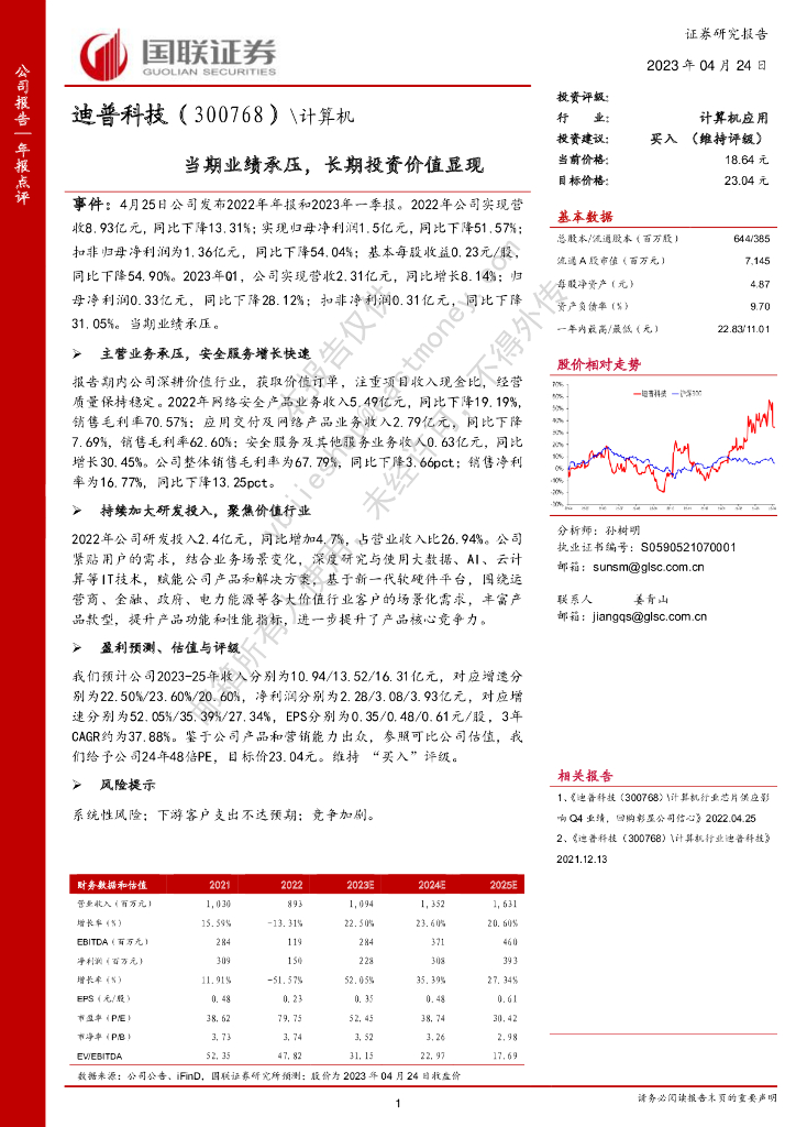 国联证券:迪普科技(300768)-当期业绩承压,长期投资价值显现.pdf