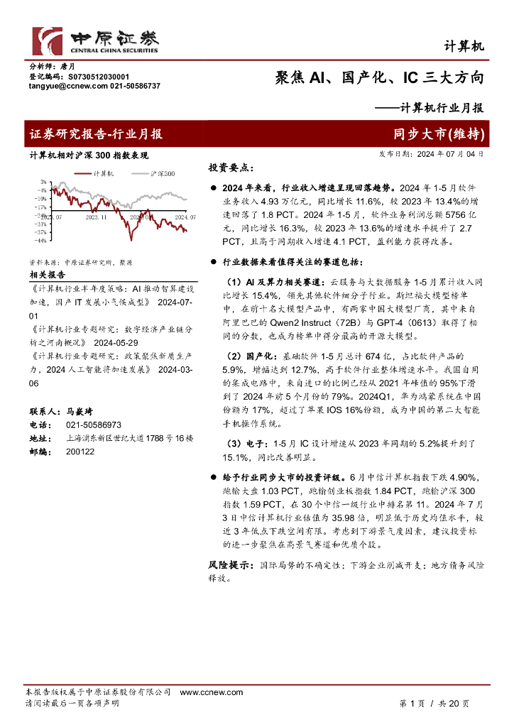 中原证券:计算机行业月报:聚焦AI、国产化、IC三大方向.pdf