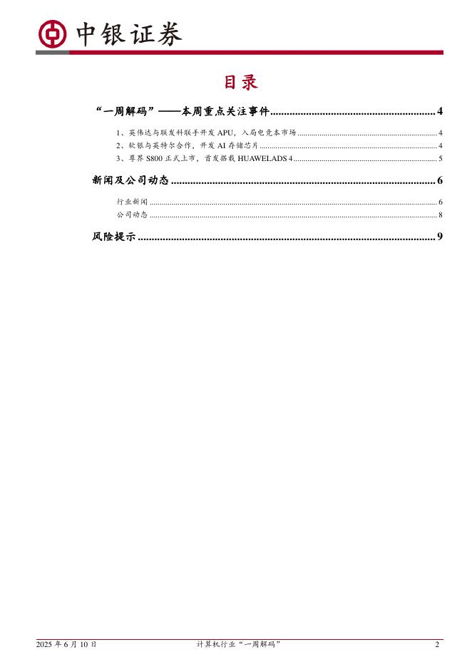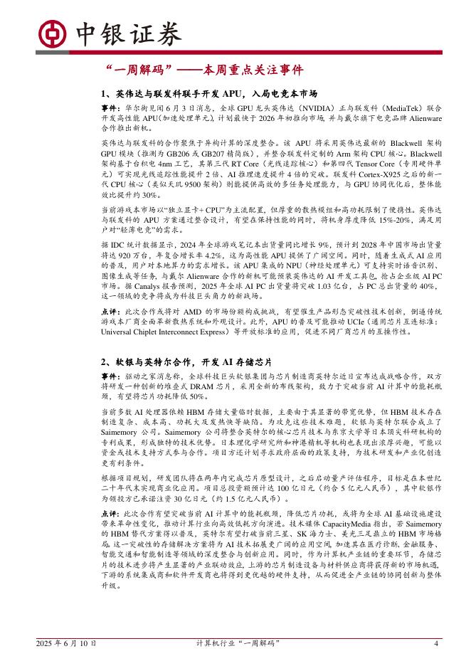 中银证券:计算机行业周报:计算机行业“一周解码”英伟达与联发科联手开发APU,入局电竞本市场.pdf