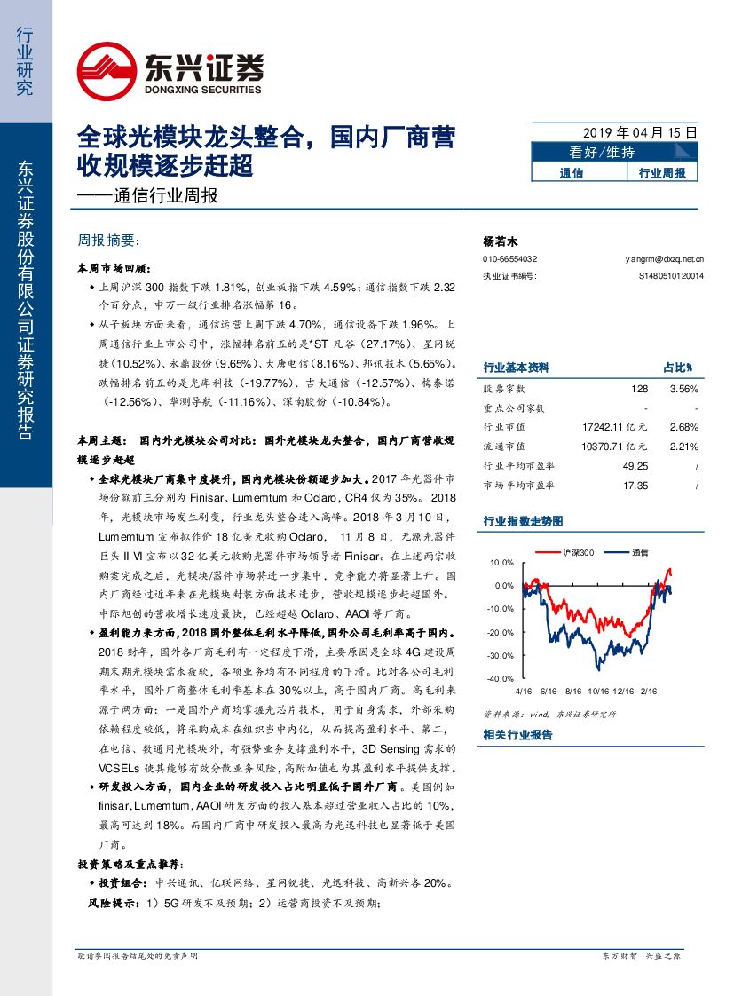 东兴证券:通信行业周报:全球光模块龙头整合,国内厂商营收规模逐步赶超.pdf