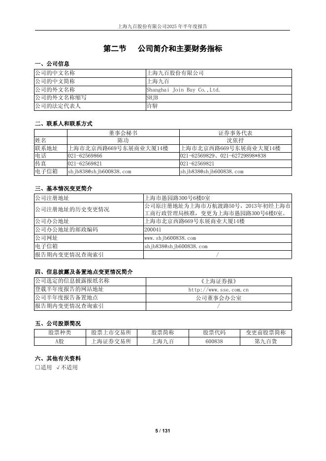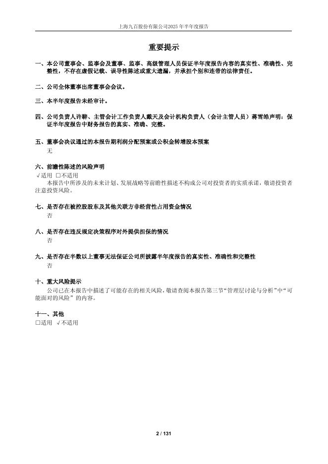 600838-上海九百:上海九百2025年半年度报告.pdf