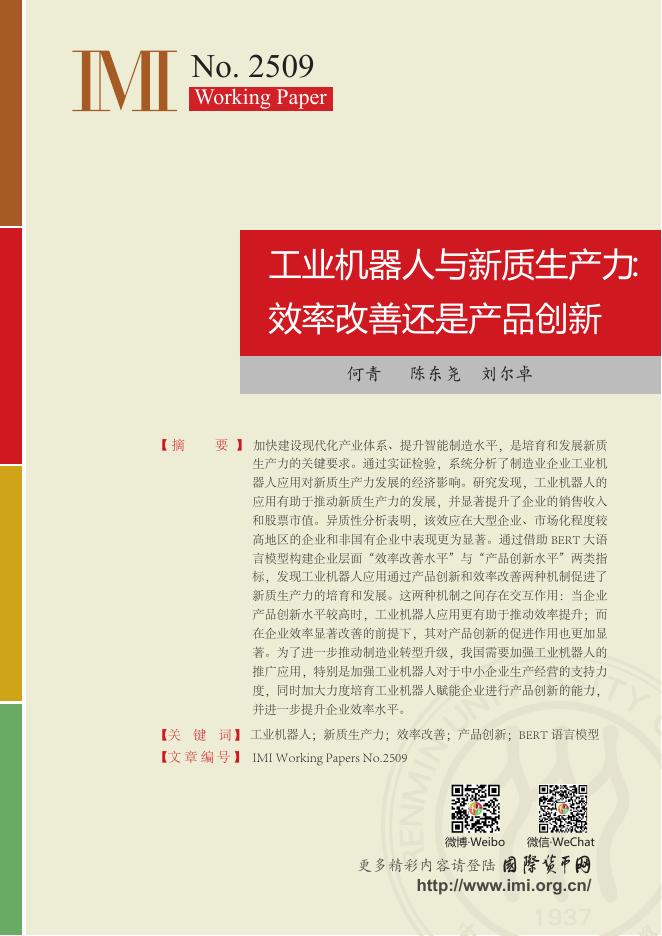 国际货币网:【IMI Working Paper No.2509】工业机器人与新质生产力:效率改善还是产品创新.pdf