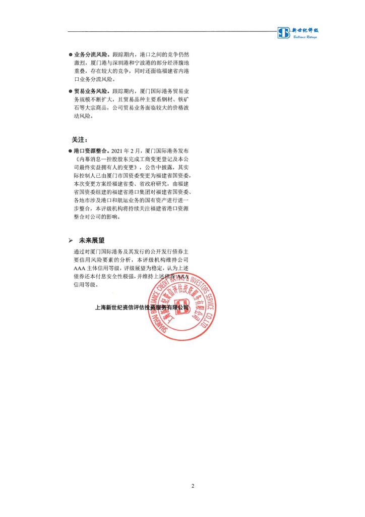 新世纪:厦门国际港务股份有限公司及其发行的公开发行债券跟踪评级报告.pdf