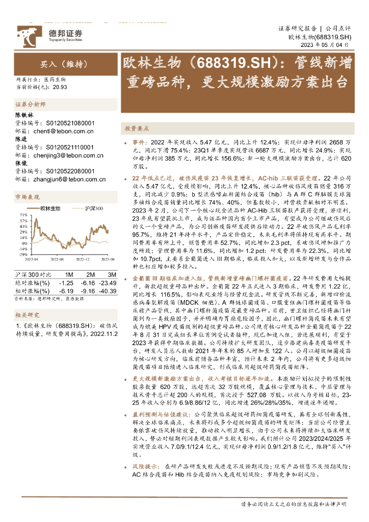 德邦证券:欧林生物(688319)-管线新增重磅品种,更大规模激励方案出台.pdf