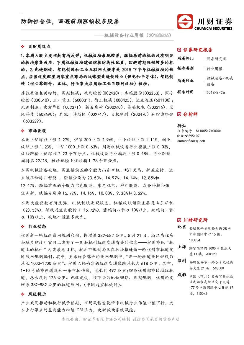 川财证券:机械设备行业周报:防御性仓位,回避前期涨幅较多股票.pdf