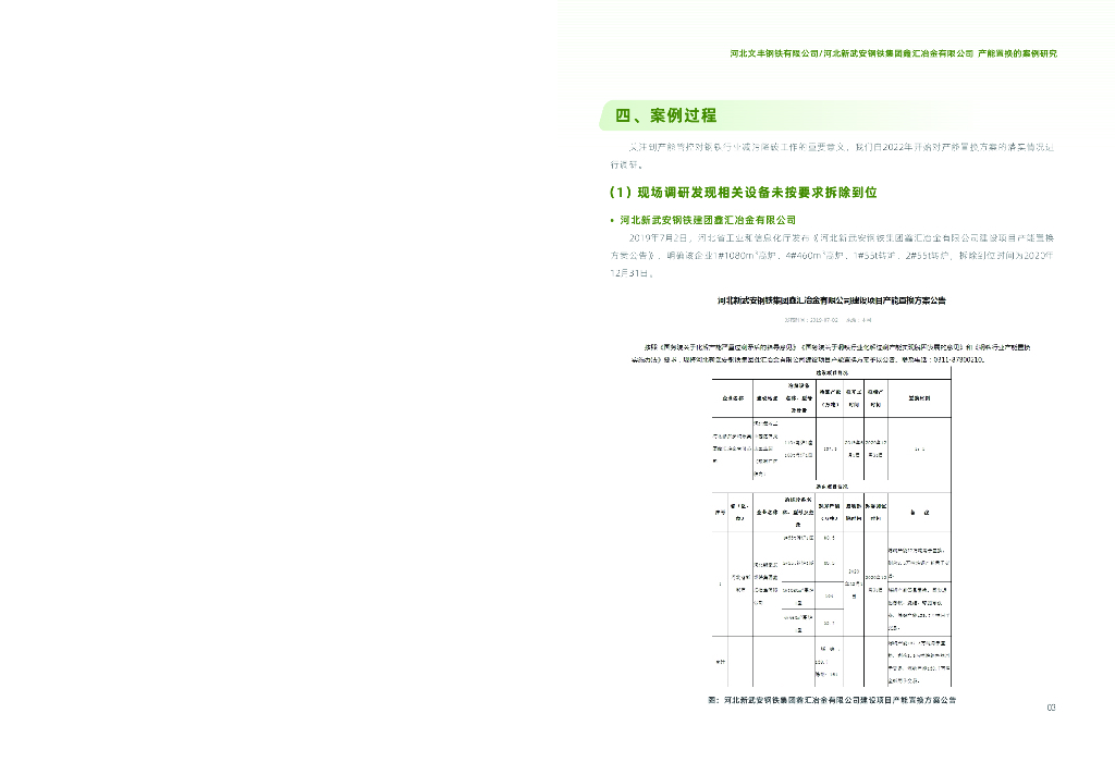 绿行太行:2024年河北文丰钢铁有限公司及河北新武安钢铁集团鑫汇冶金有限公司产能置换的案例研究报告-推动产能置换⽅案落实用于置换的产能设备拆除到位.pdf