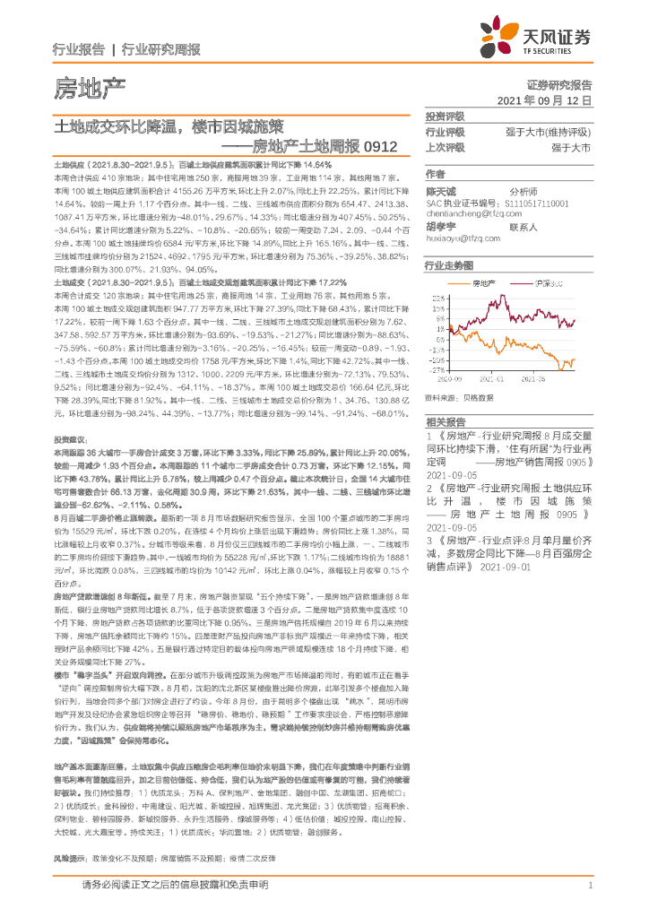 天风证券:房地产土地周报:土地成交环比降温,楼市因城施策.pdf