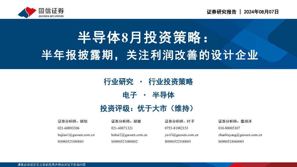 国信证券:半导体8月投资策略:半年报披露期,关注利润改善的设计企业.pdf