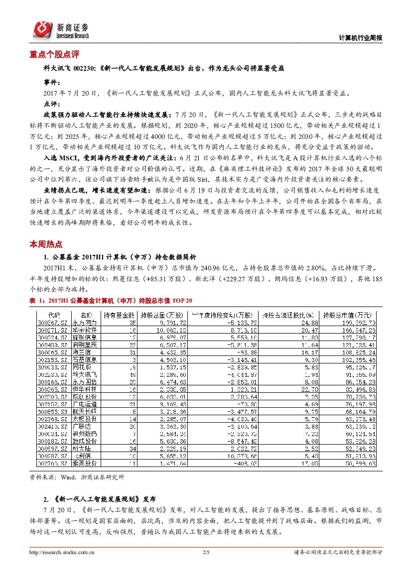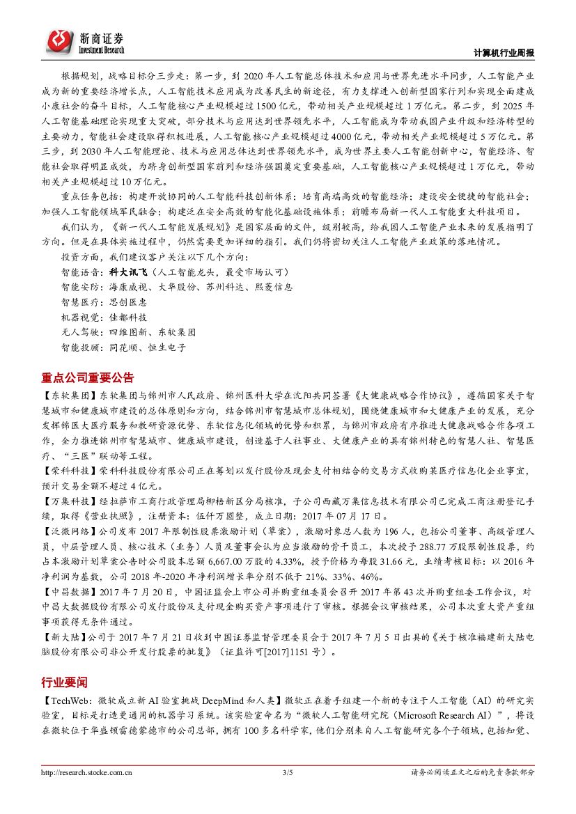 浙商证券:计算机行业周报:《新一代人工智能发展规划》落地,中报陆续发布.pdf