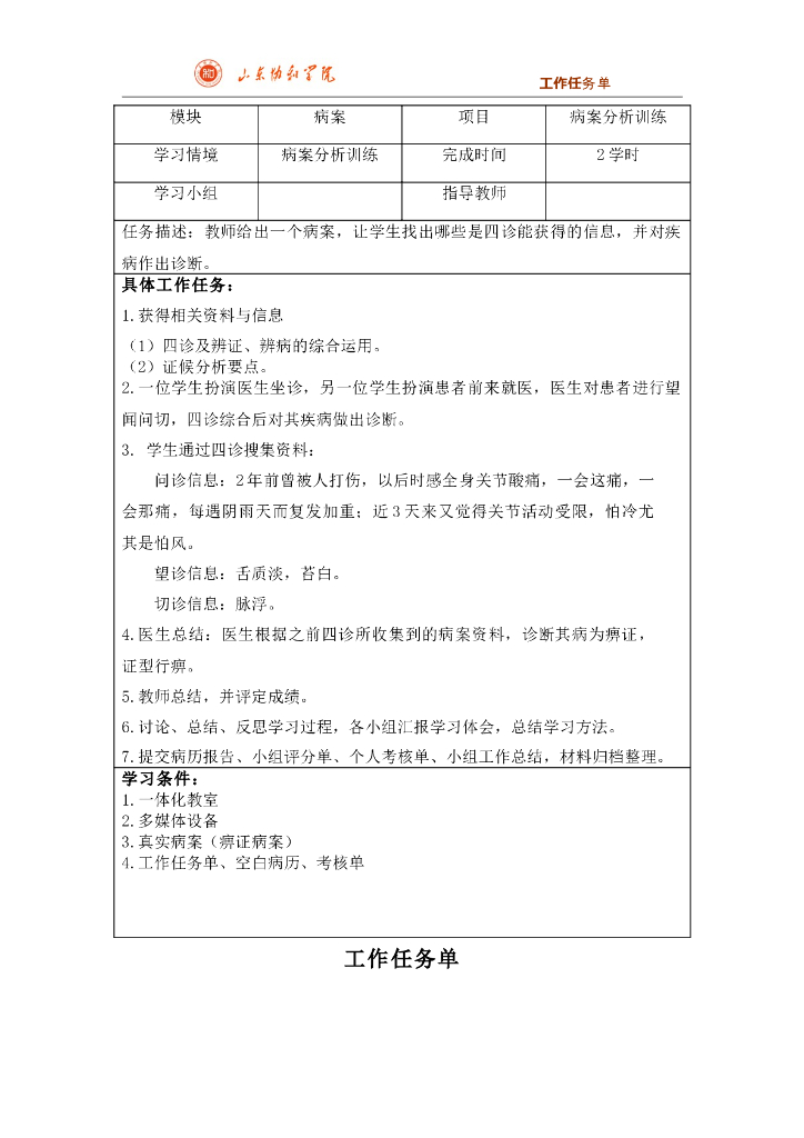 《中医诊断学》任务工单合集.pdf