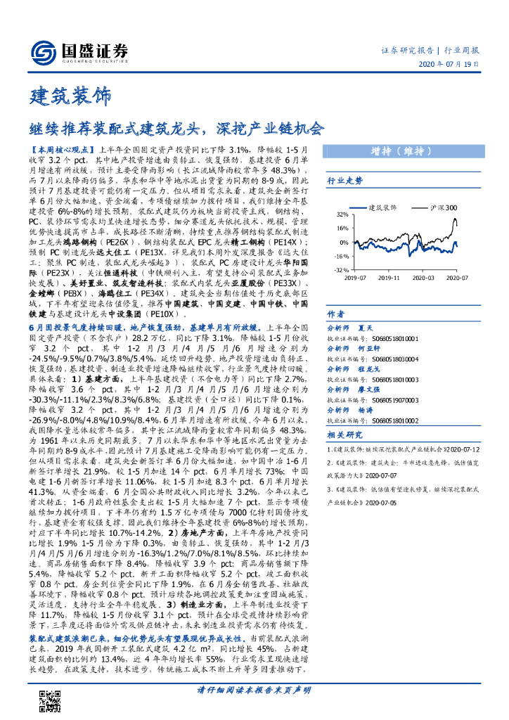 国盛证券:建筑装饰行业周报:继续推荐装配式建筑龙头,深挖产业链机会.pdf