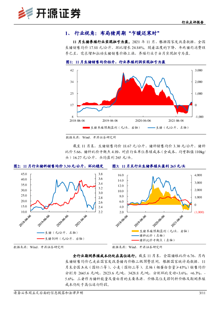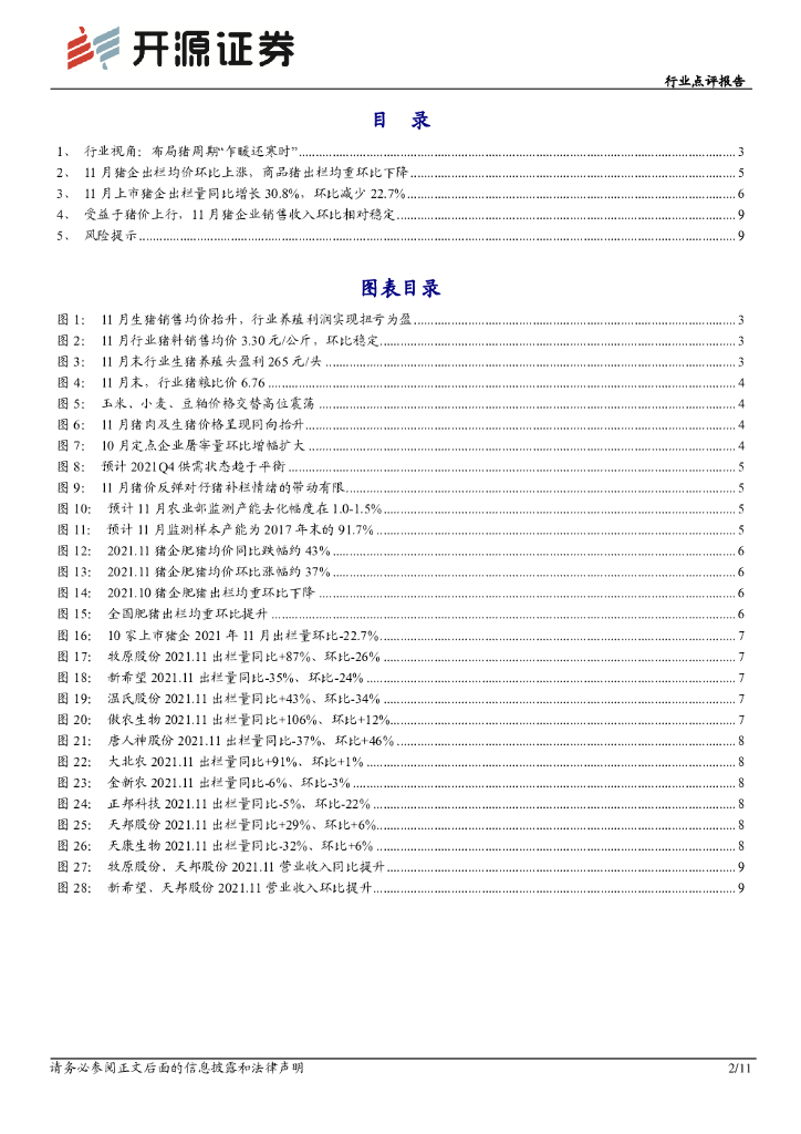 开源证券:农林牧渔行业点评报告:11月猪企销售均价环比提升,出栏量环比下降.pdf