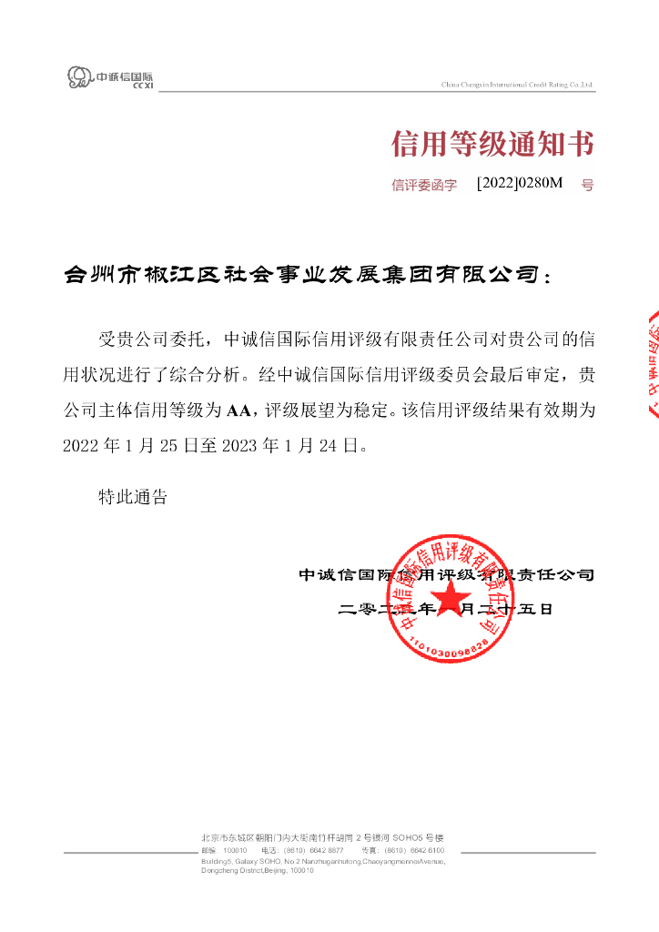 中诚信:台州市椒江区社会事业发展集团有限公司主体信用评级报告.pdf