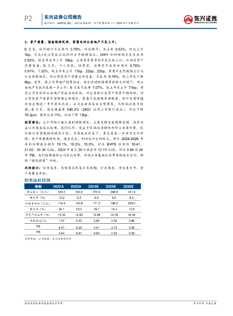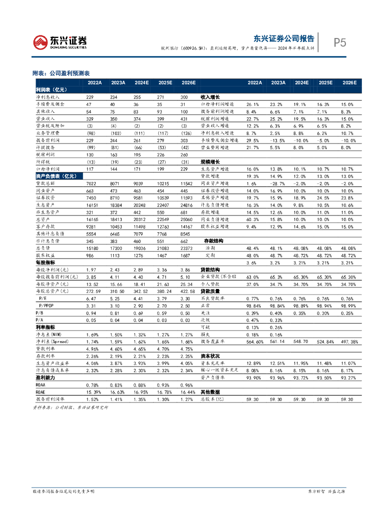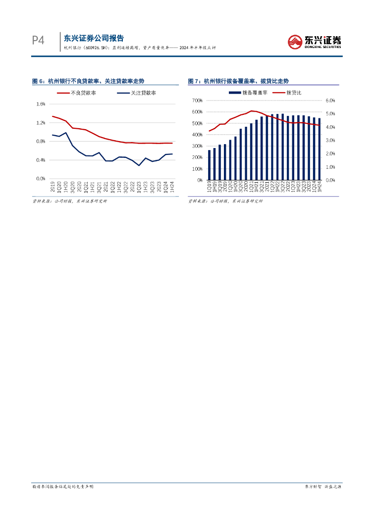 东兴证券:杭州银行(600926)-2024半年报点评:盈利延续高增,资产质量优异.pdf