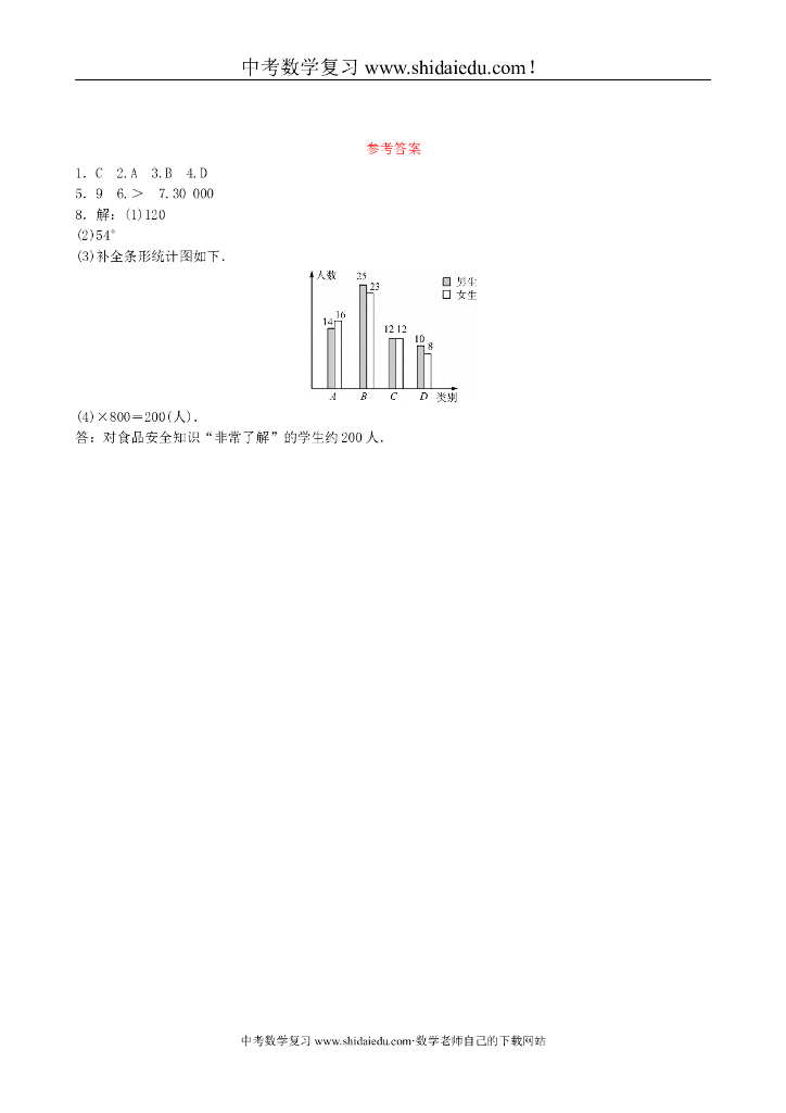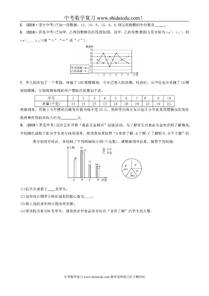 中考数学复习第1部分第八章统计与概率第一节统计要题随堂演练(含参考答案).doc