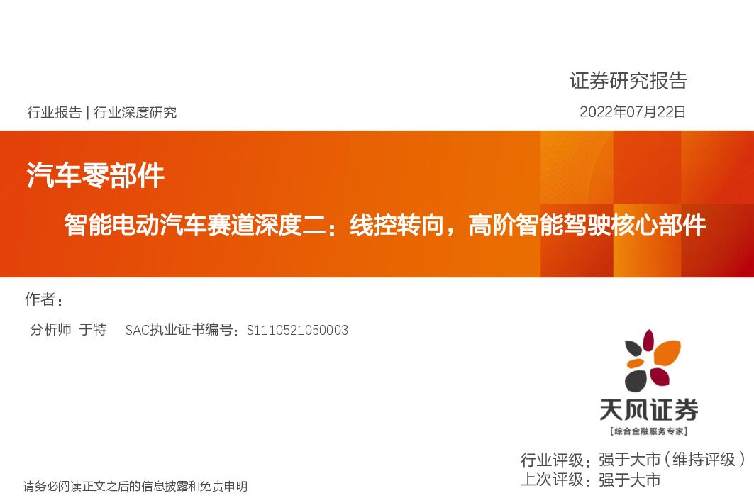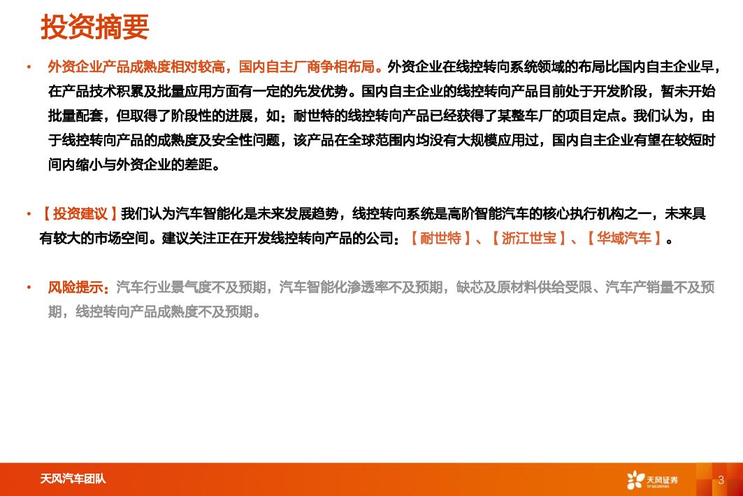 天风证券:智能电动汽车赛道深度二:线控转向,高阶智能驾驶核心部件.pdf