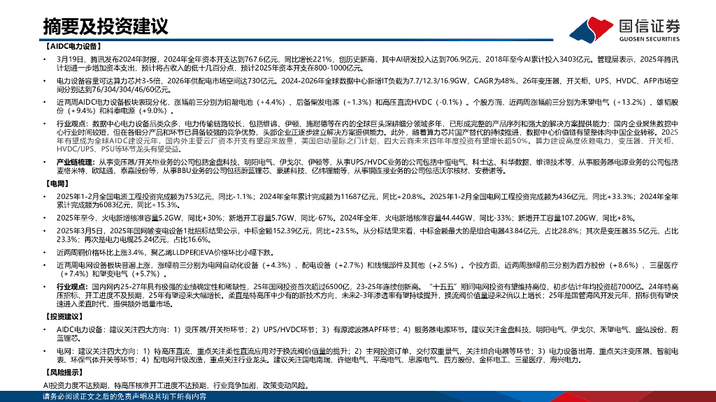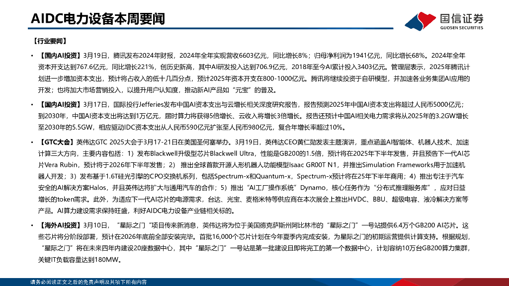 国信证券:AIDC电力设备/电网产业链周评(3月第3周):重视电网投资释放确定性,英伟达GTC大会指引未来发展方向.pdf