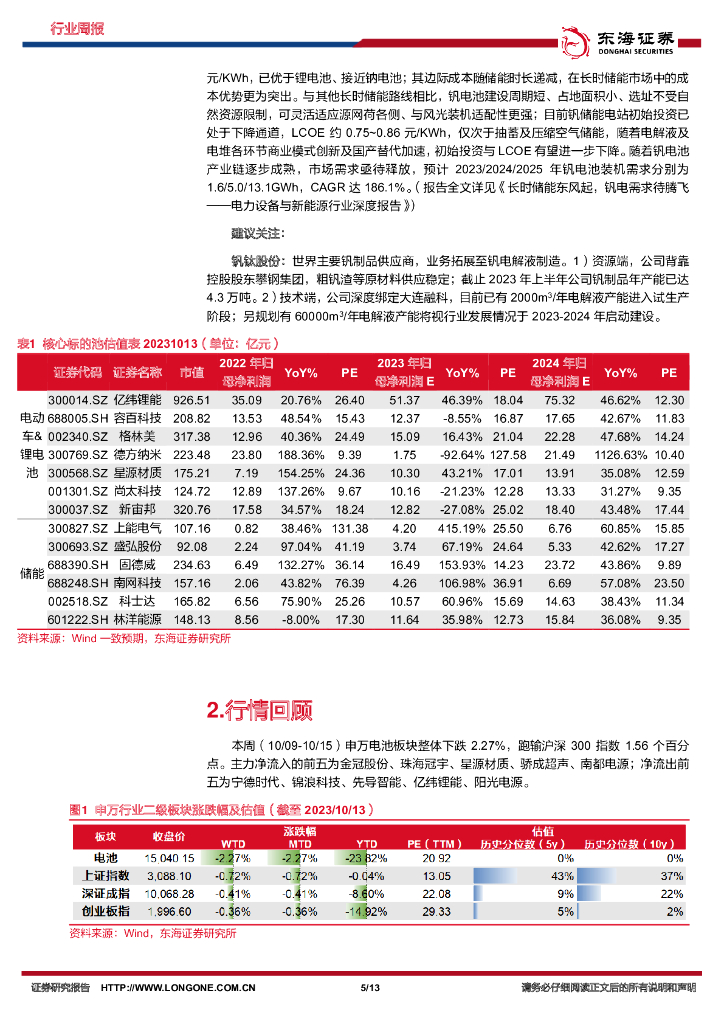 东海证券:电池及储能行业周报:储能电站安全性要求提升叠加长时储能发展趋势,全钒液流电池迎发展良机.pdf