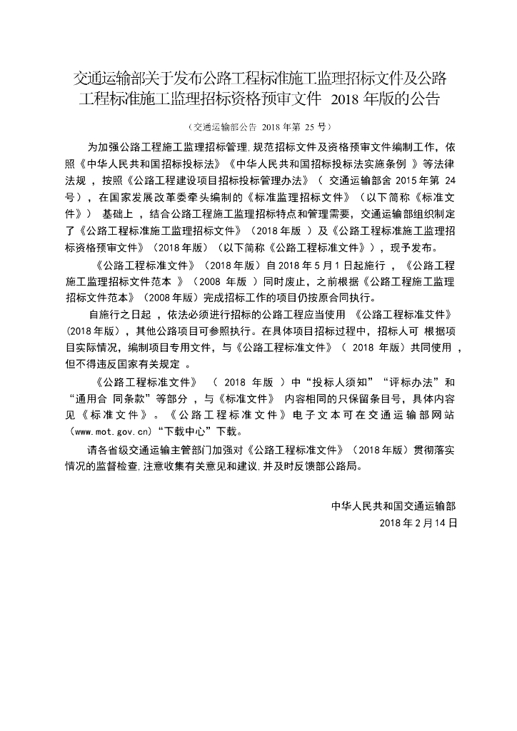 交通运输部:公路工程标准施工监理招标文件(2018年版)152页.doc