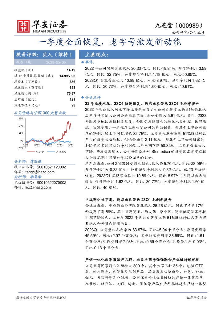 华安证券:九芝堂(000989)-一季度全面恢复,老字号激发新动能.pdf