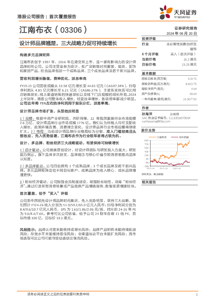 天风证券:江南布衣(03306)港股公司研究报告-设计师品牌翘楚,三大战略力促可持续增长.pdf