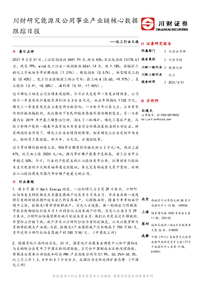 川财证券:化工行业日报:川财研究能源及公用事业产业链核心数据跟踪日报.pdf
