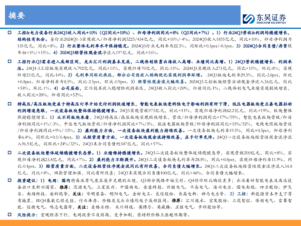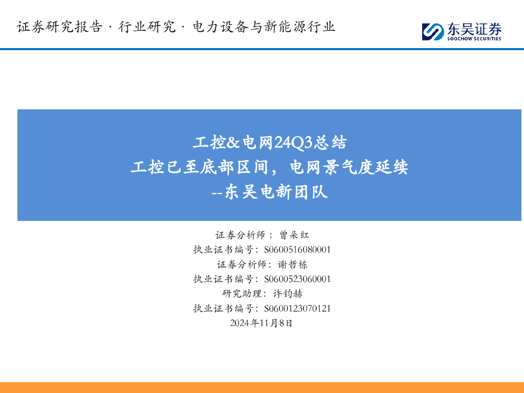 东吴证券:工控&电网24Q3总结:工控已至底部区间,电网景气度延续.pdf