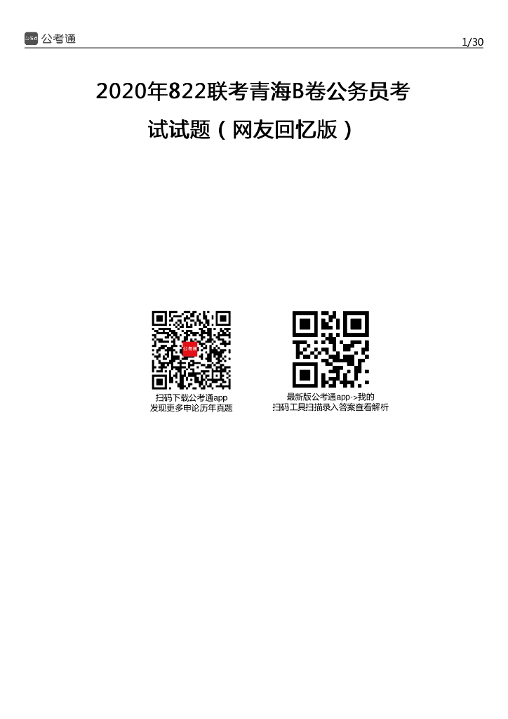 2020年青海公务员考试行测试题及答案(B卷).pdf