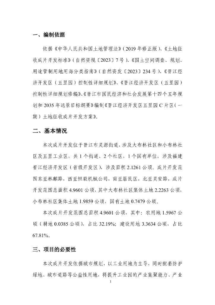 晋江经济开发区五里园C片区(一期)土地征收成片开发方案(公示稿).pdf