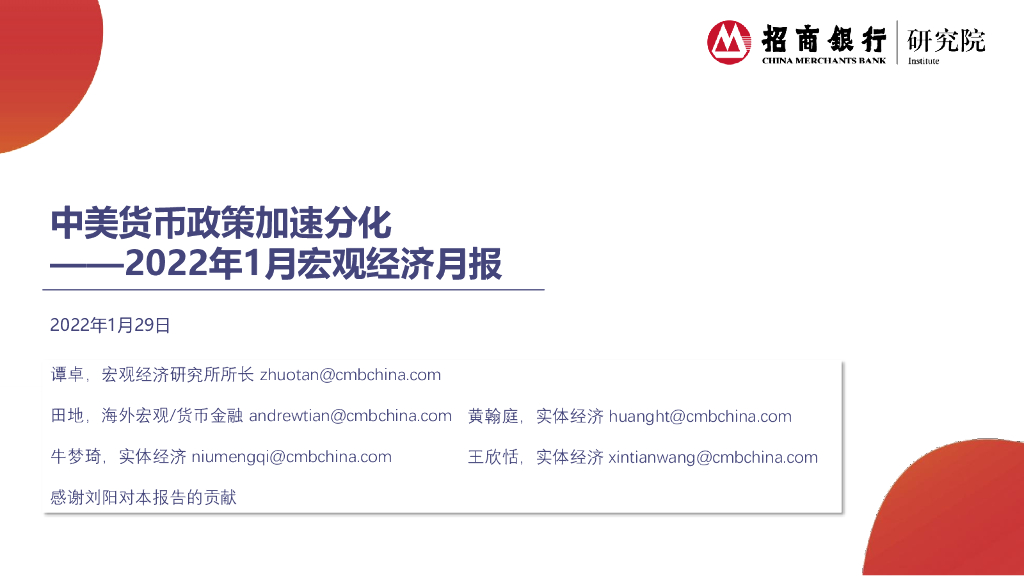 招商银行:2022年1月宏观经济月报:中美货币政策加速分化.pdf