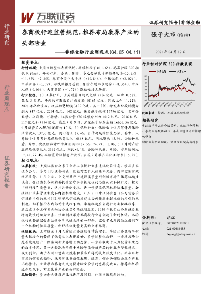 万联证券:非银金融行业周观点:券商投行迎监管规范,推荐布局康养产业的头部险企.pdf