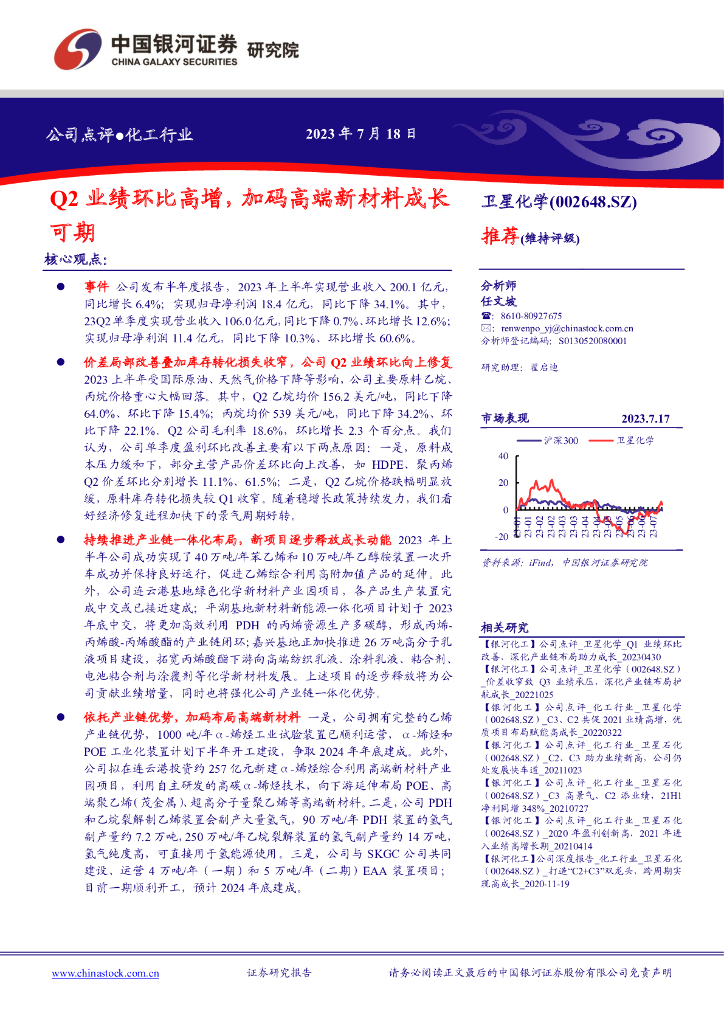 中国银河:卫星化学(002648)-Q2业绩环比高增,加码高端新材料成长可期.pdf