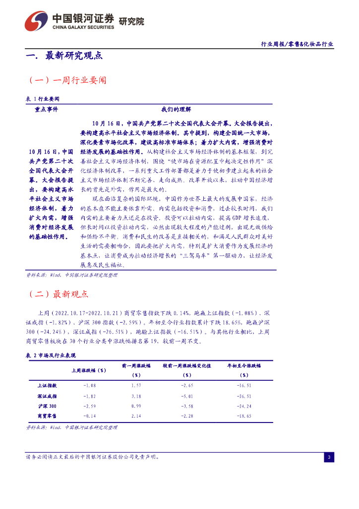中国银河:消费品零售&化妆品行业:二十大进一步明确扩大内需的重要性,维持推荐经营稳定的优质零售标的.pdf
