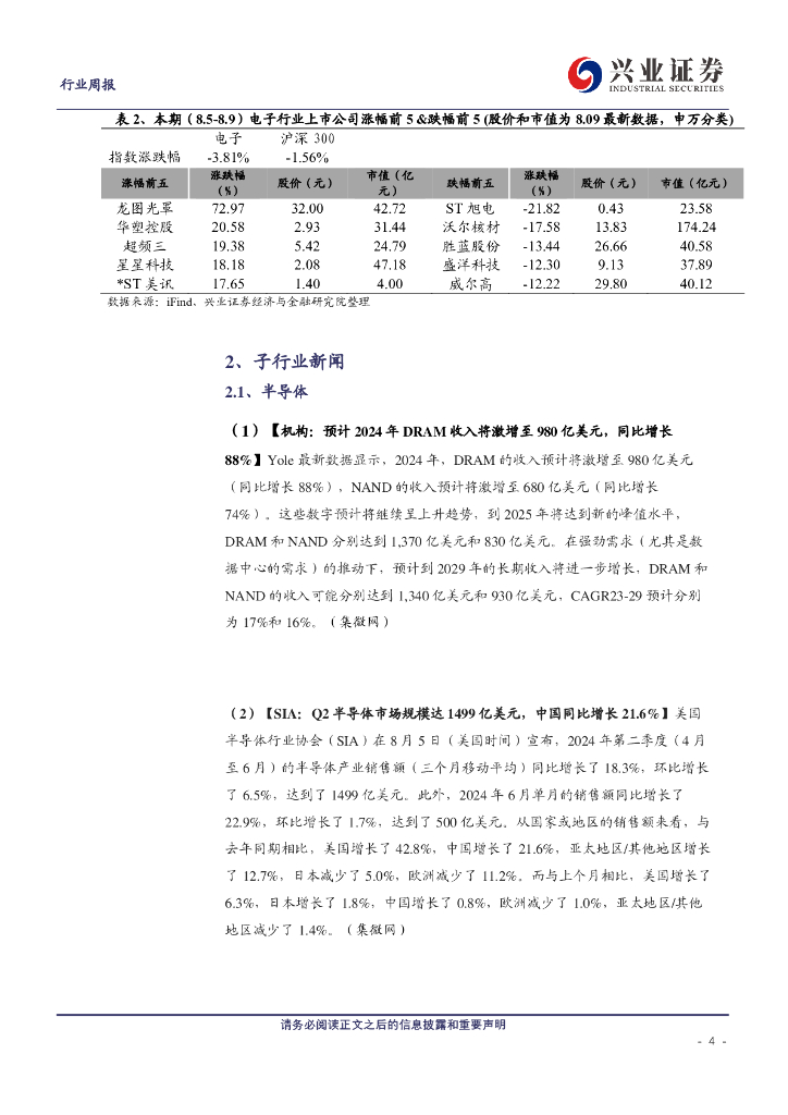 中原证券:半导体行业月报:原厂陆续发布涨价函,存储器周期继续上行