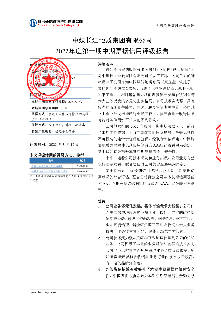 联合资信:中煤长江地质集团有限公司2022年度第一期中期票据信用评级报告.pdf