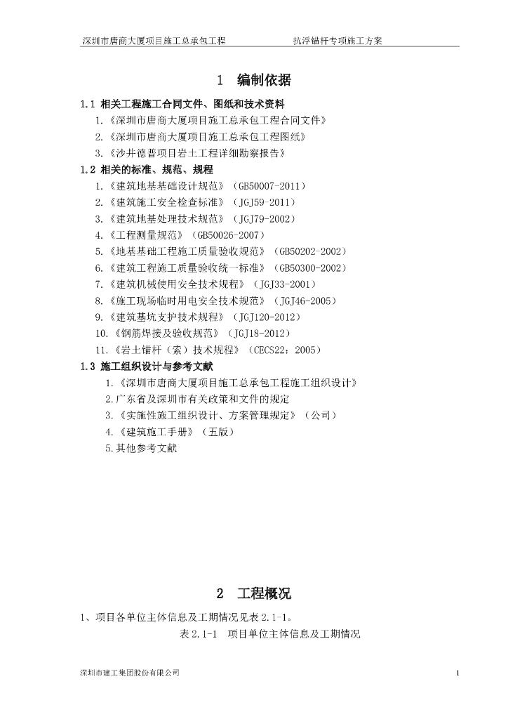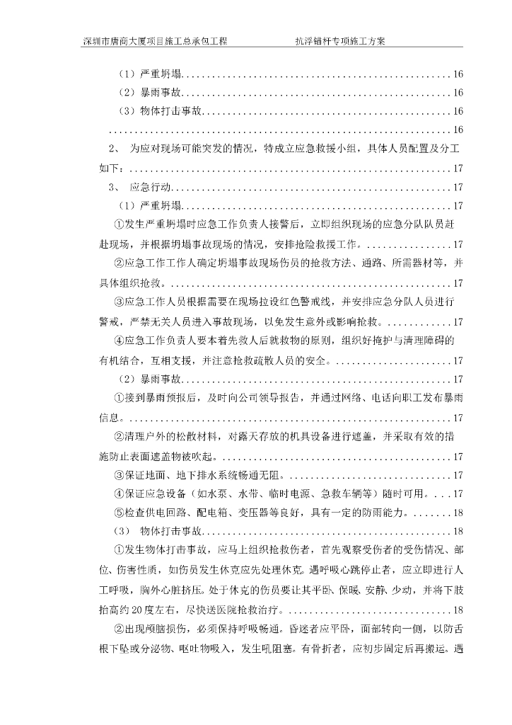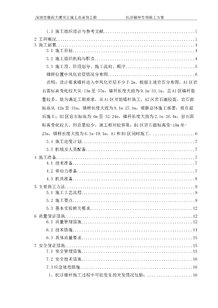 深圳大厦项目抗浮锚杆专项施工方案(20页).doc