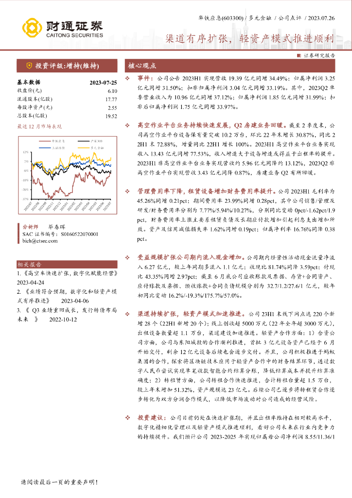财通证券:华铁应急(603300)-渠道有序扩张,轻资产模式推进顺利.pdf