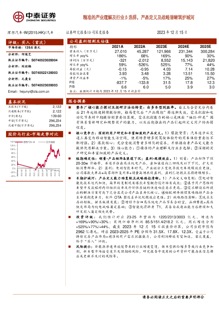 中泰证券:2023理想汽车研究报告:精准的产业理解及行业β选择,产品定义及战略清晰筑护城河.pdf