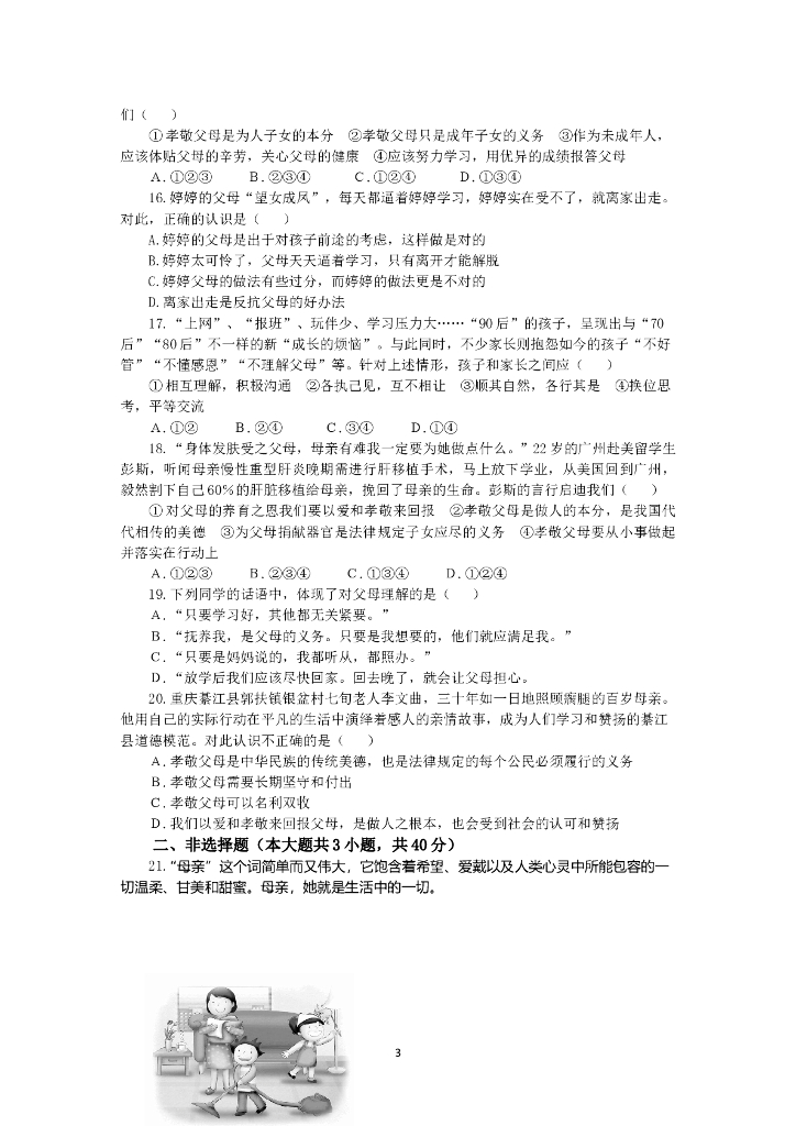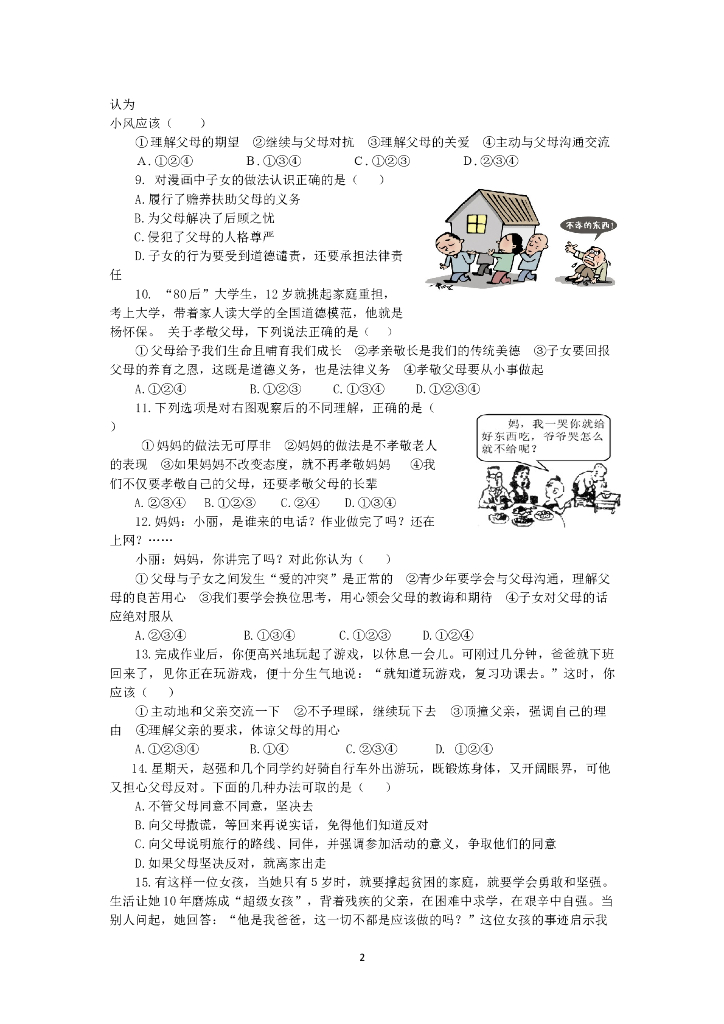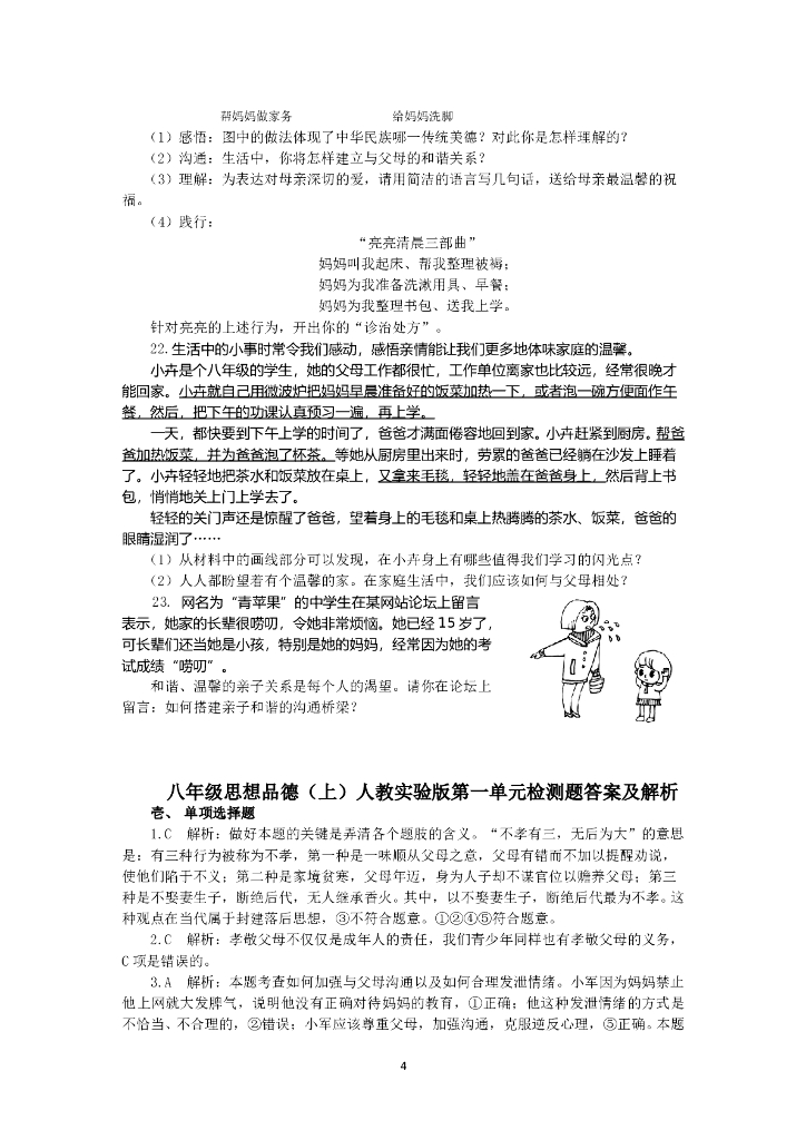 人教实验版八年级政治上册《第1单元 相亲相爱一家人(1)》检测题(含答案详解).doc
